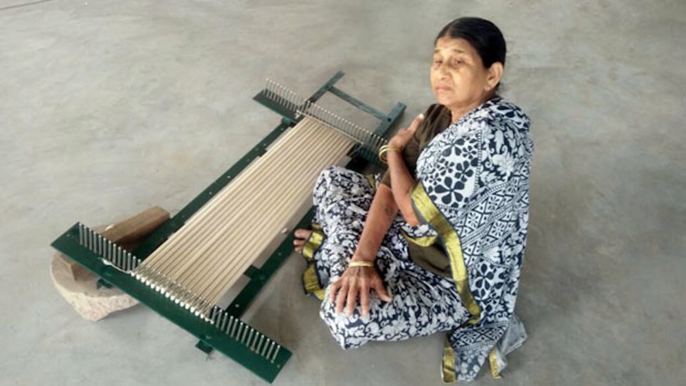 In order to set patterns for Pochampally sarees (these are made in Telangana) it takes a weaver over 18000 hand motions to set 25 kms of silk thread to make just two sarees a day. Laxmi was from one such weaver family and her son, Mallesham Chinthakindi, watched his mother struggle for years. She was in constant pain due to the repetitive hand motions required while doing the ‘ASU’ (pattern setting) for weaving Pochampally sarees. Mallesham dropped out of school and decided to find a way to remove her drudgery, make her life easier and make the ASU process faster.