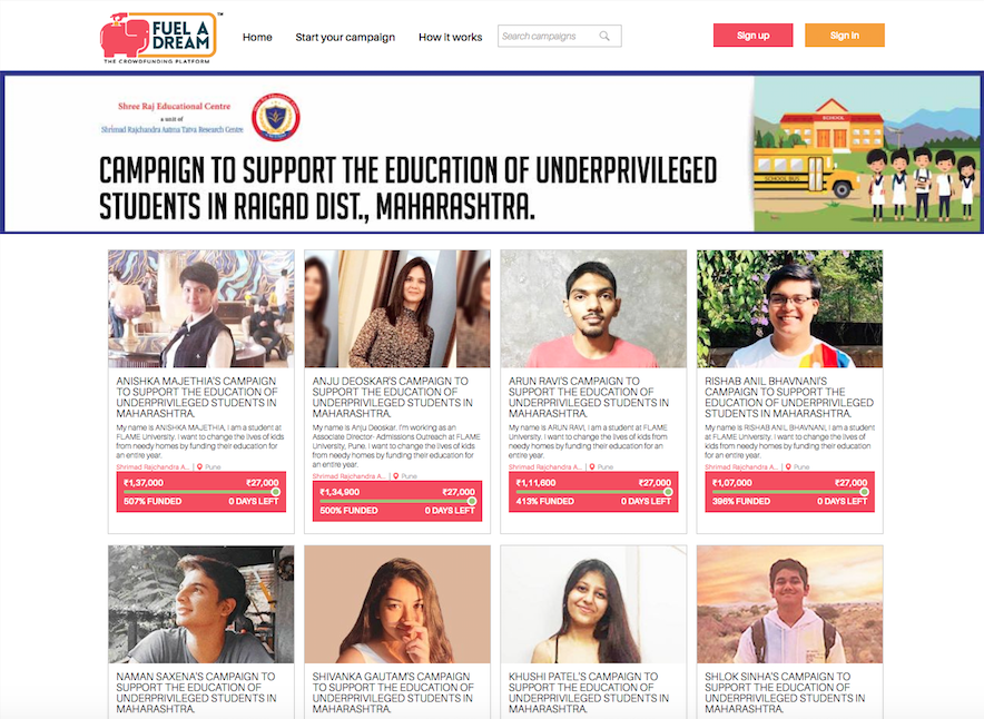 Thirty-nine students and one member of the administrative staff of Flame University joined hands to support the education of children studying in the remote area in Parli, Raigad dist. They study in a school set up by Shree Raj Educational Centre. They did a crowdfunding campaign on FuelADream.com in the month of February and have raised an impressive INR 14.4 L. This will support the education, meals, uniform and transport of 80 children for a year. They went past the initial goal in just 7 days.